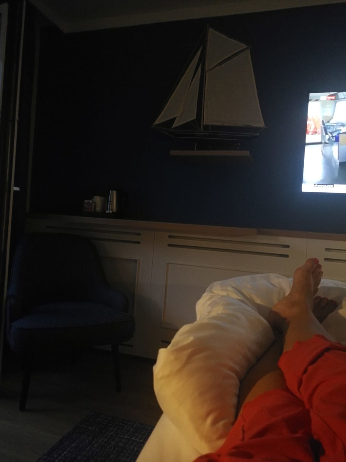 Entspannung pur. Der grosse Bildschirm und die blau Wandfarbe tragen massgeblich dazu bei!