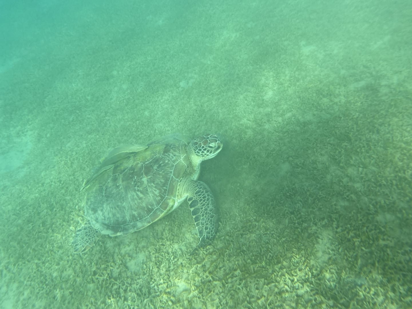 Hausriff Schildkröte - jeden Tag in der Bucht beim Grasen zu sehen