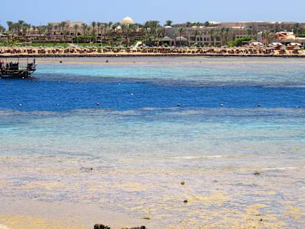 Blick auf die Bucht und Hotels gegenüber Steigenberger Coraya Beach - Adults only