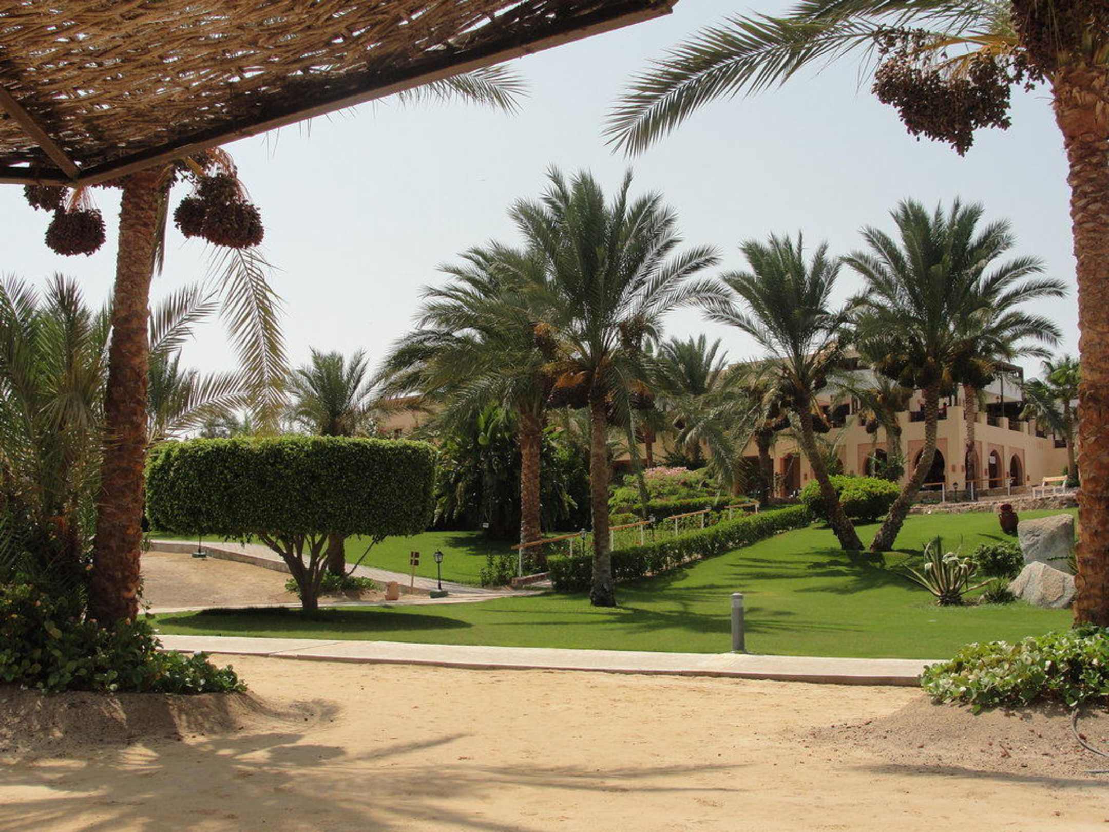 Hier sieht man den Zugang zur Hotelanlage. An dem Aufgang links an der Hecke befindet sich eine Fußdusche, was die Sandfreiheit im Poolbereich enorm begünstigt.