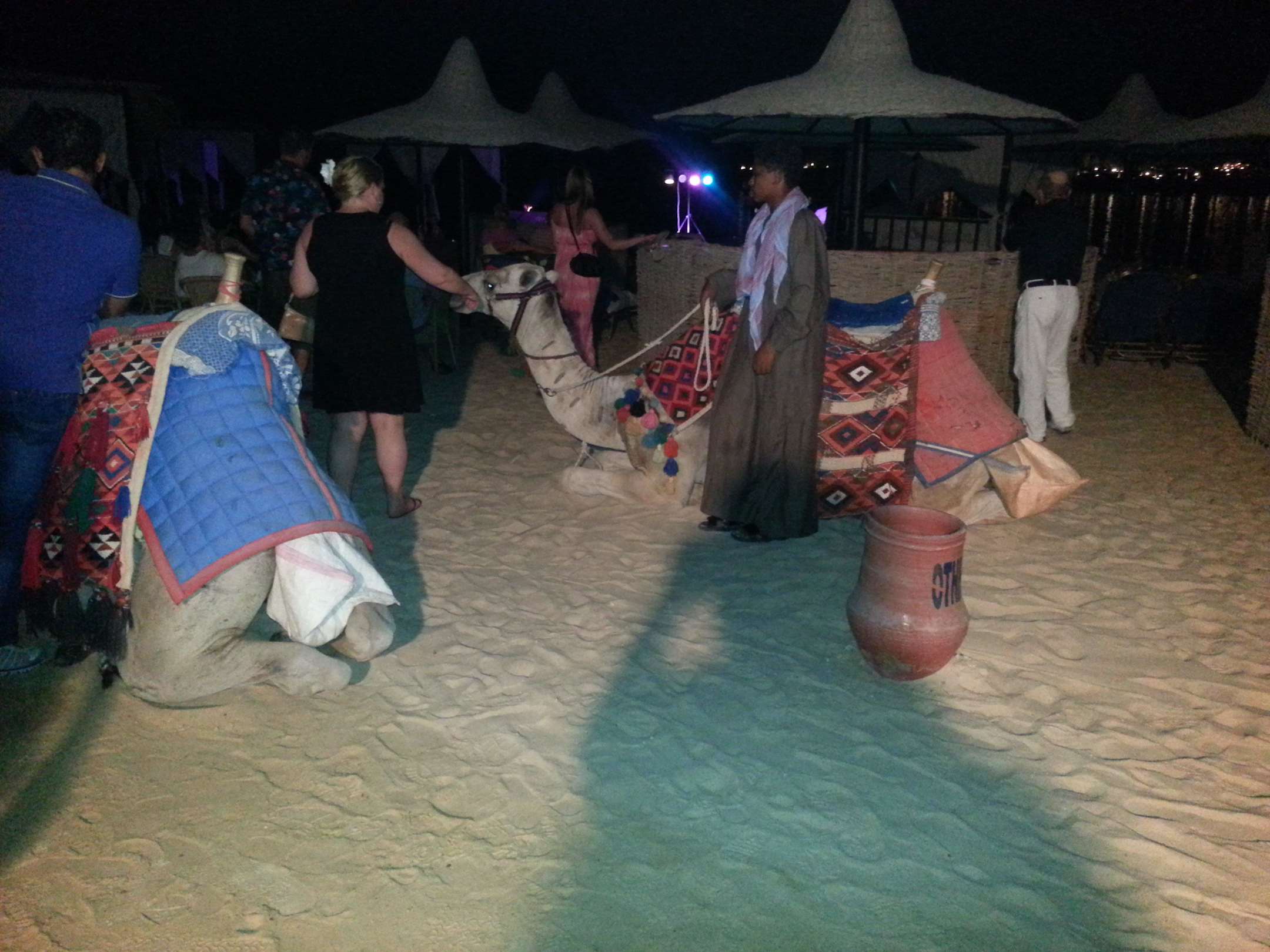 LagerfeuerabendEs spielte ein Gitarrist mit kleiner Lichtershow und die Kamele durften gestreichelt und fotografiert werden.