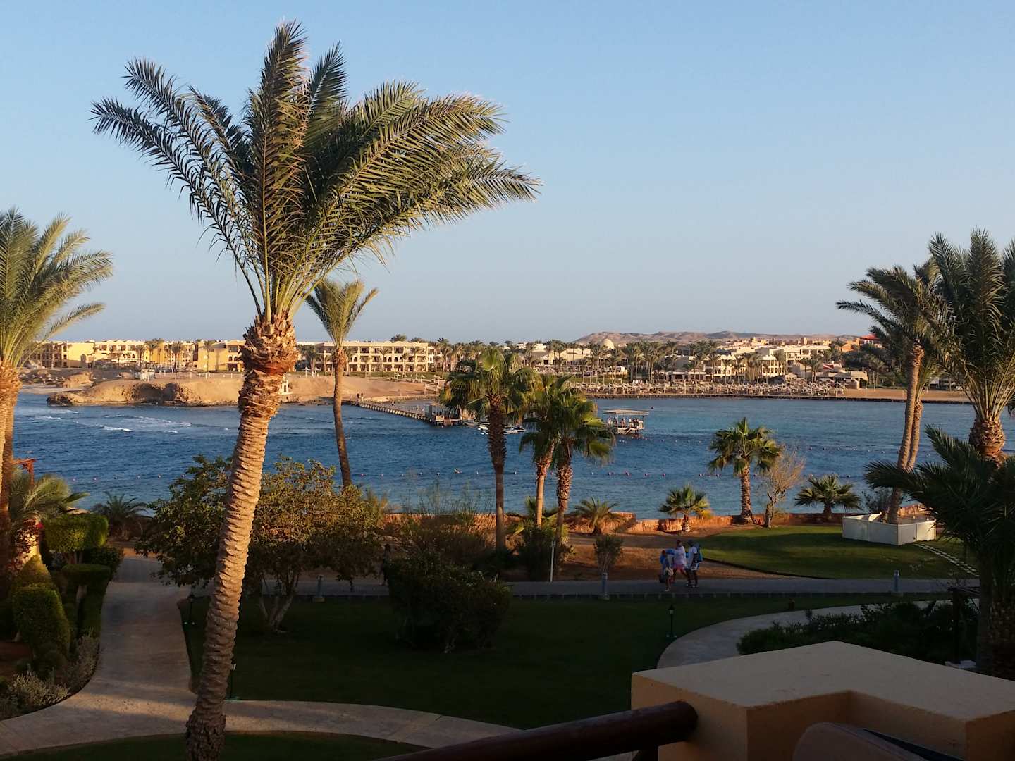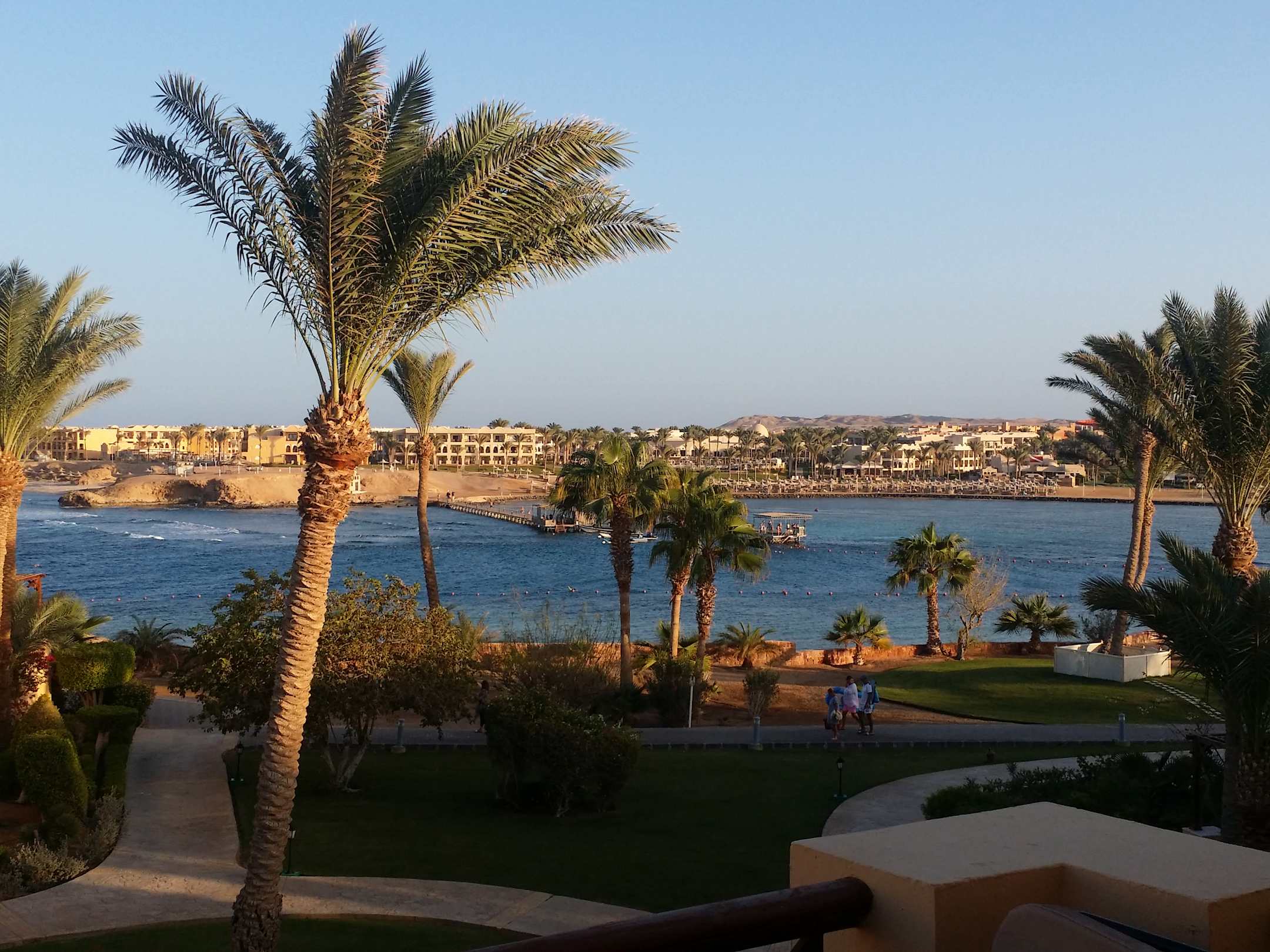 Blick vom Zimmer auf die Bucht (Meer). So sehen die Ausblicke aus den Meerblick-Zimmern aus.