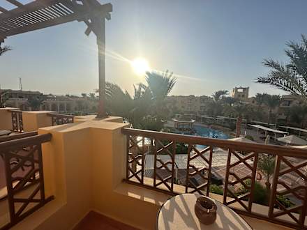 Toller Ausblick über die ganze Innenseite der Anlage. Gartenlage auch sehr schön! (Freunde von uns hatten ihr Zimmer dort, leider habe ich davon kein Foto)