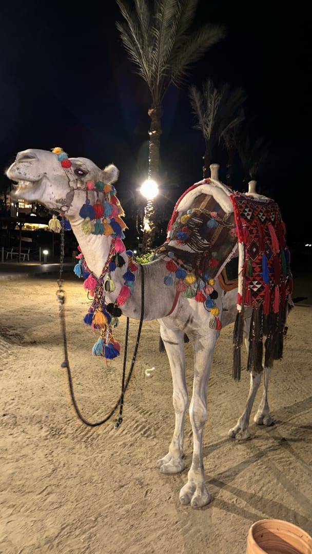Kamelreiten abends am Strand