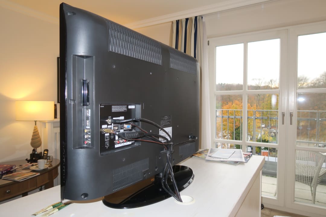 Zimmer 521, Blick vom Bett auf die Rückseite des TV