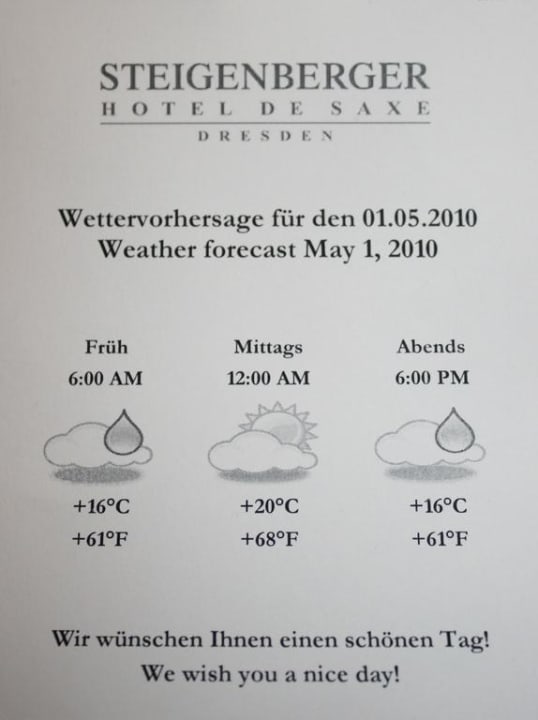 Nette Geste am AbendNeben zwei Betthupferln lag am Abend diese Wetterinfo für den nächsten Tag auf dem Bett.