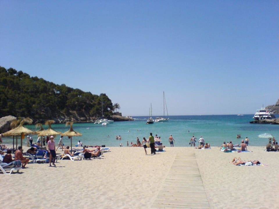Strand Camp de MarStrand, ca. 2 Min. vom Hotel. Das Bild schmeichelt dem Beach etwas, links und rechts viele Sonnenschirme, dahinter 2 große Hotels