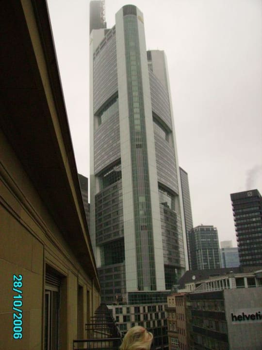 Von einigen Fenstern oder Hotelbalkonen des Steigenberger Hotels Frankfurter Hof blickt man direkt auf benachbarte Geschäftstower in der Frankfurter City.