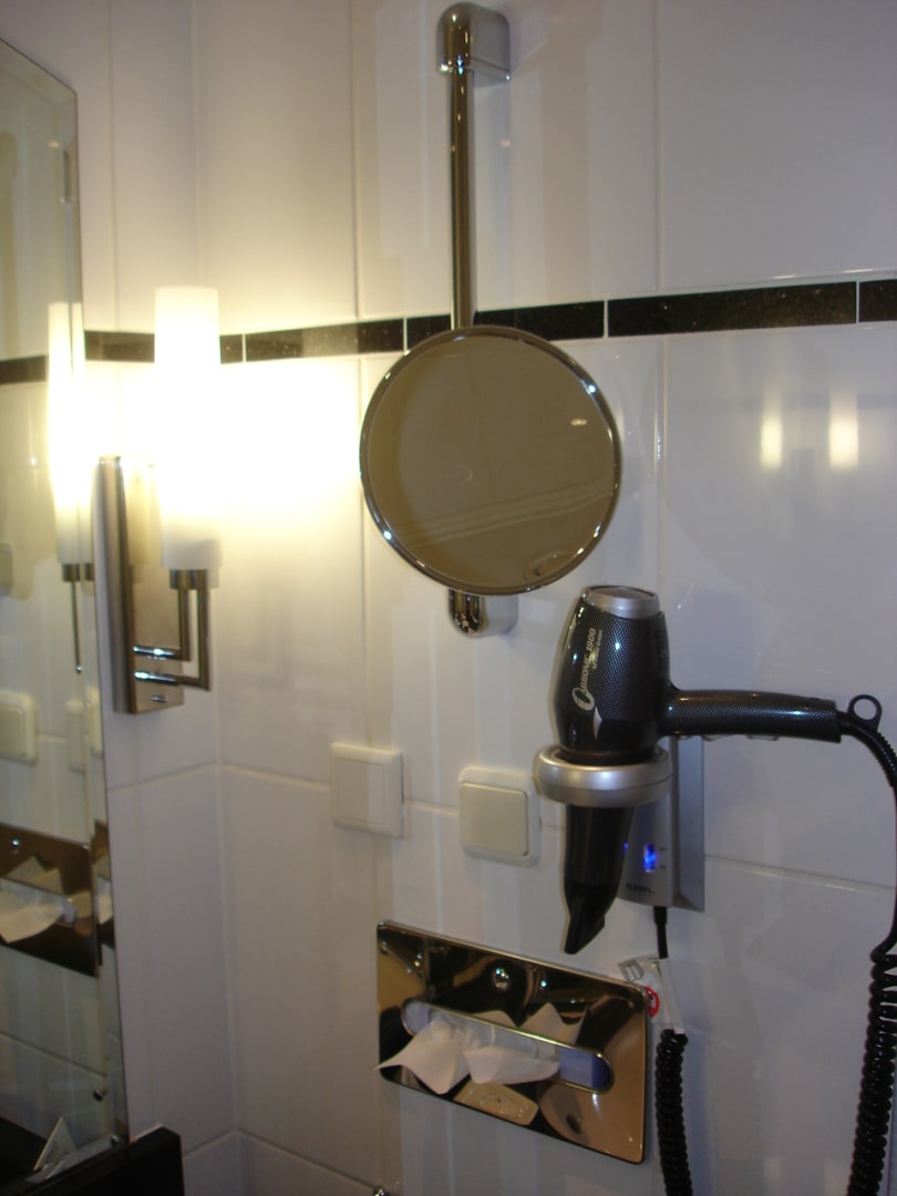 Fön und Kosmetikspiegel im Badezimmer