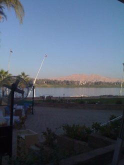 Blick von Terrasselinks davon ist der eine "kleine" Pool...hinter der Nilmauer befinden sich Feluken...
