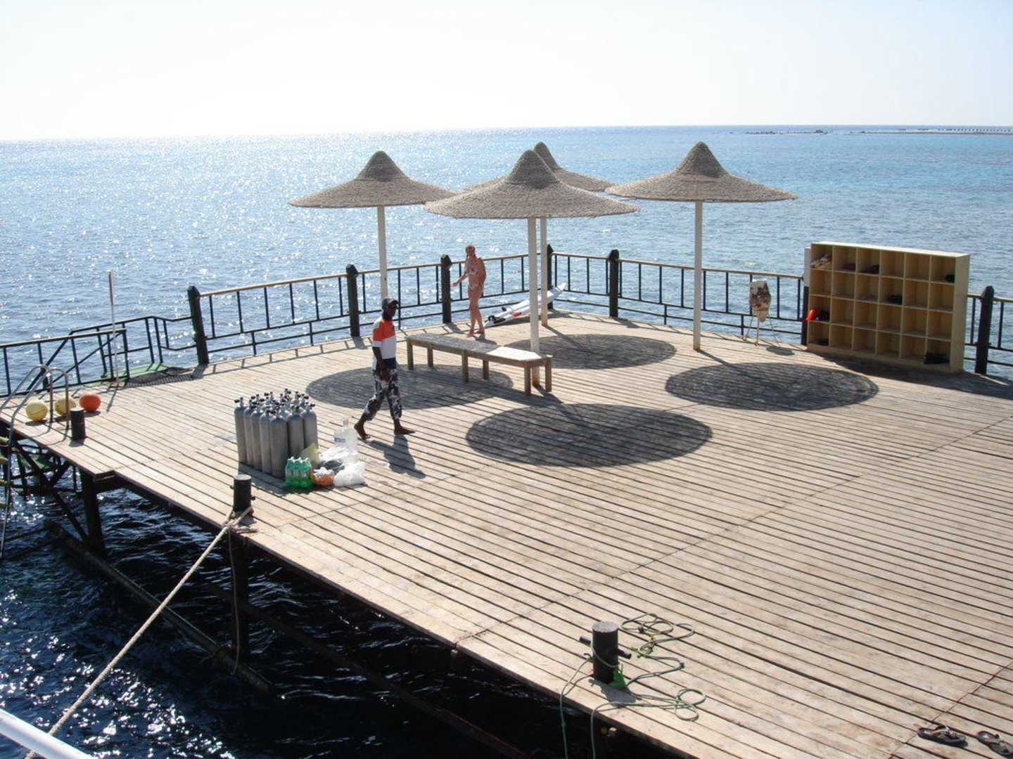 Der Hotel-Steg vom Boot aus betrachtetDer Hotel-Steg vom Boot aus betrachtet