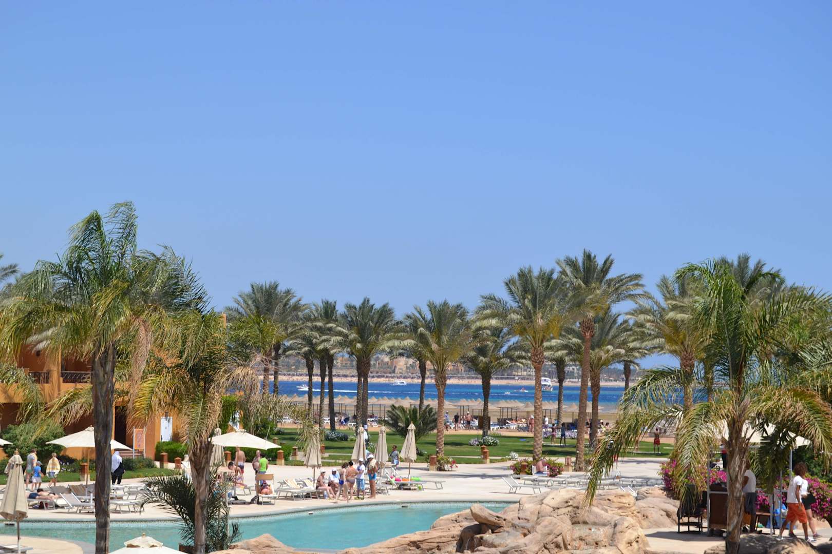 Blick über den Pool zum Meer