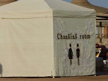 Sauna in dem Plastikzelt...