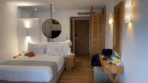 Blick von der Terrasse in den Luxury-Room 330 im östlichen Gebäudetrakt