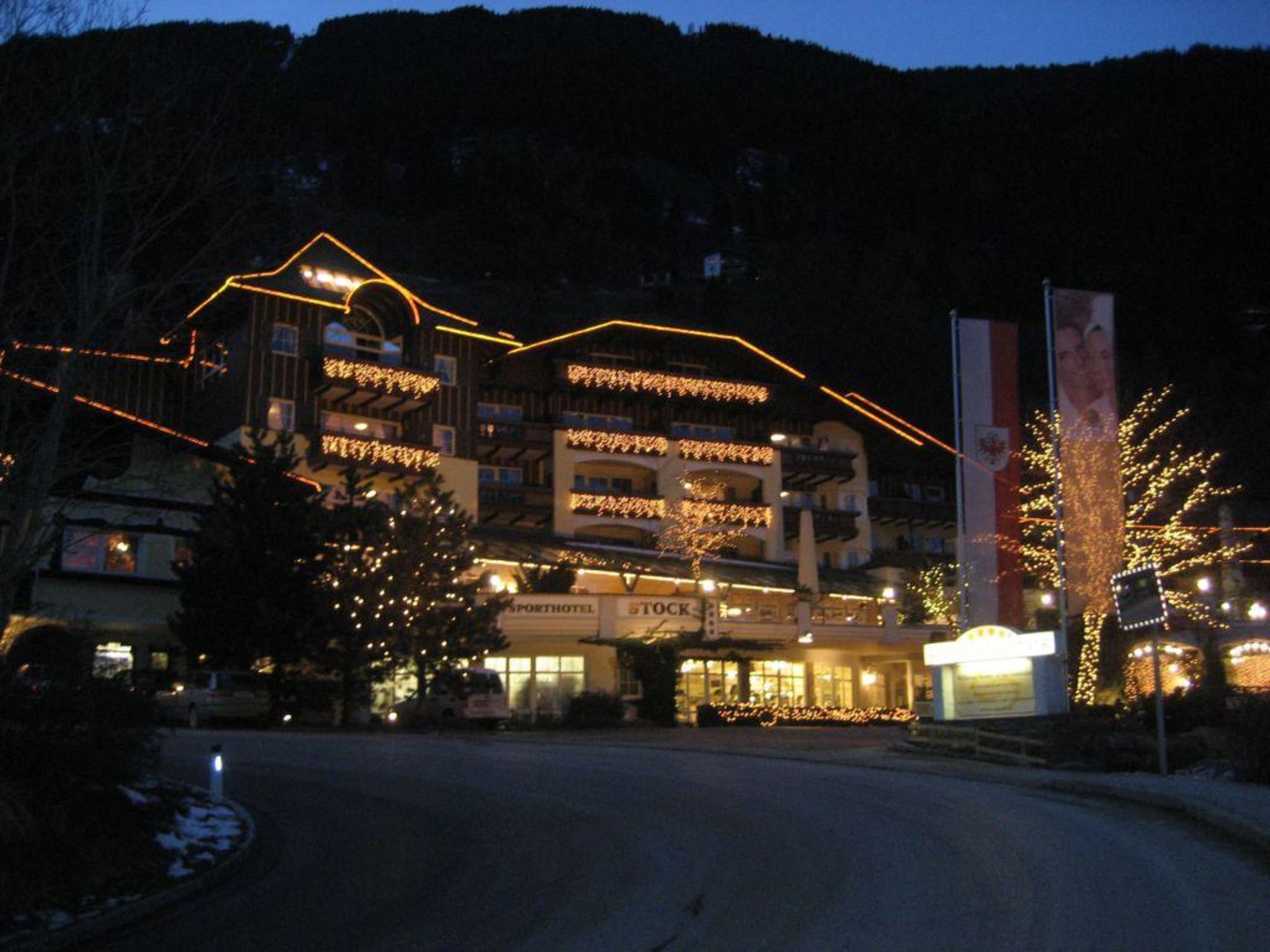 Aussenansicht Sporthotel Stock bei Nacht