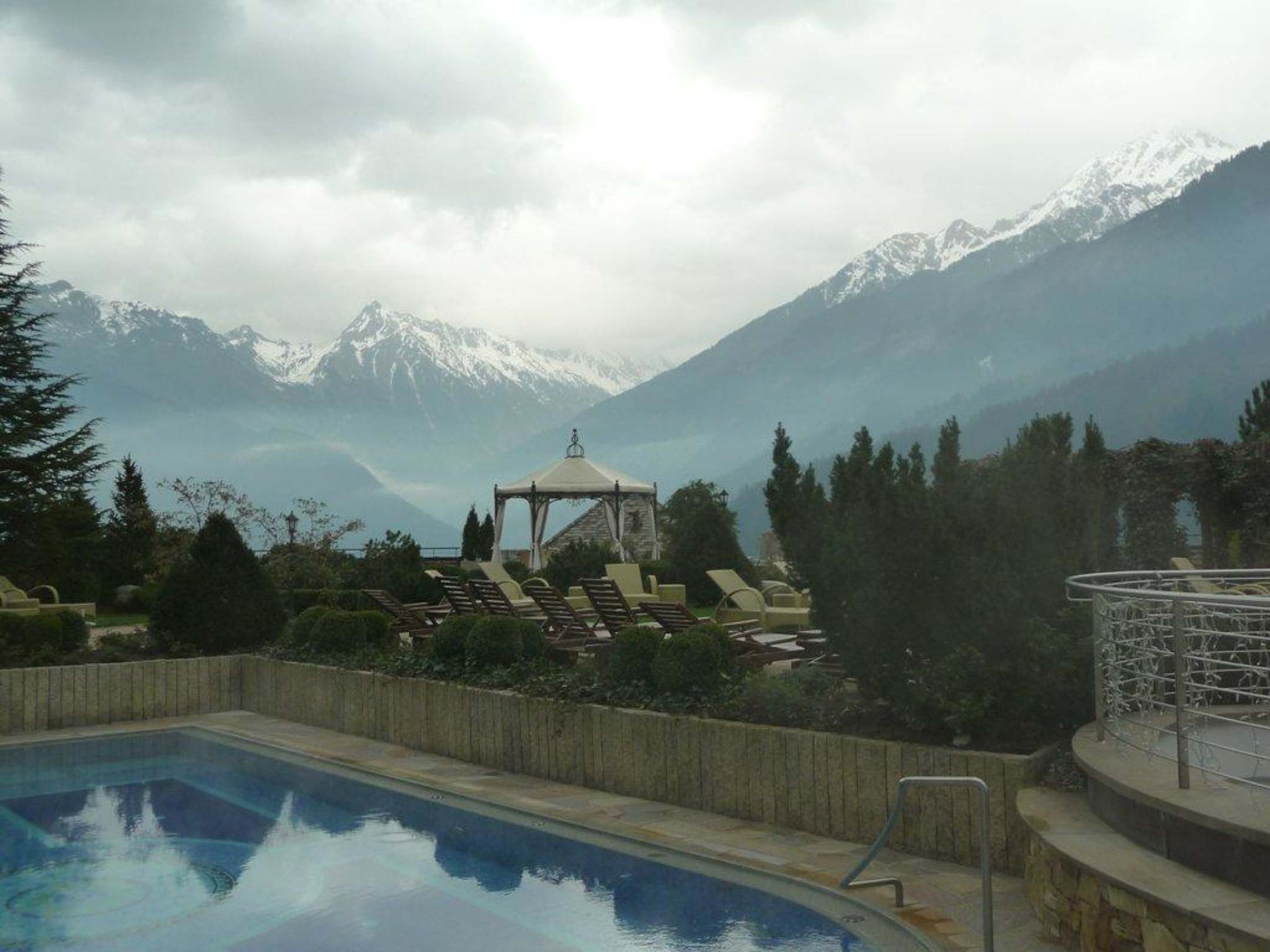 Kleiner Außenpool mit Gartenanlage
