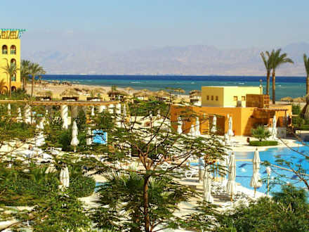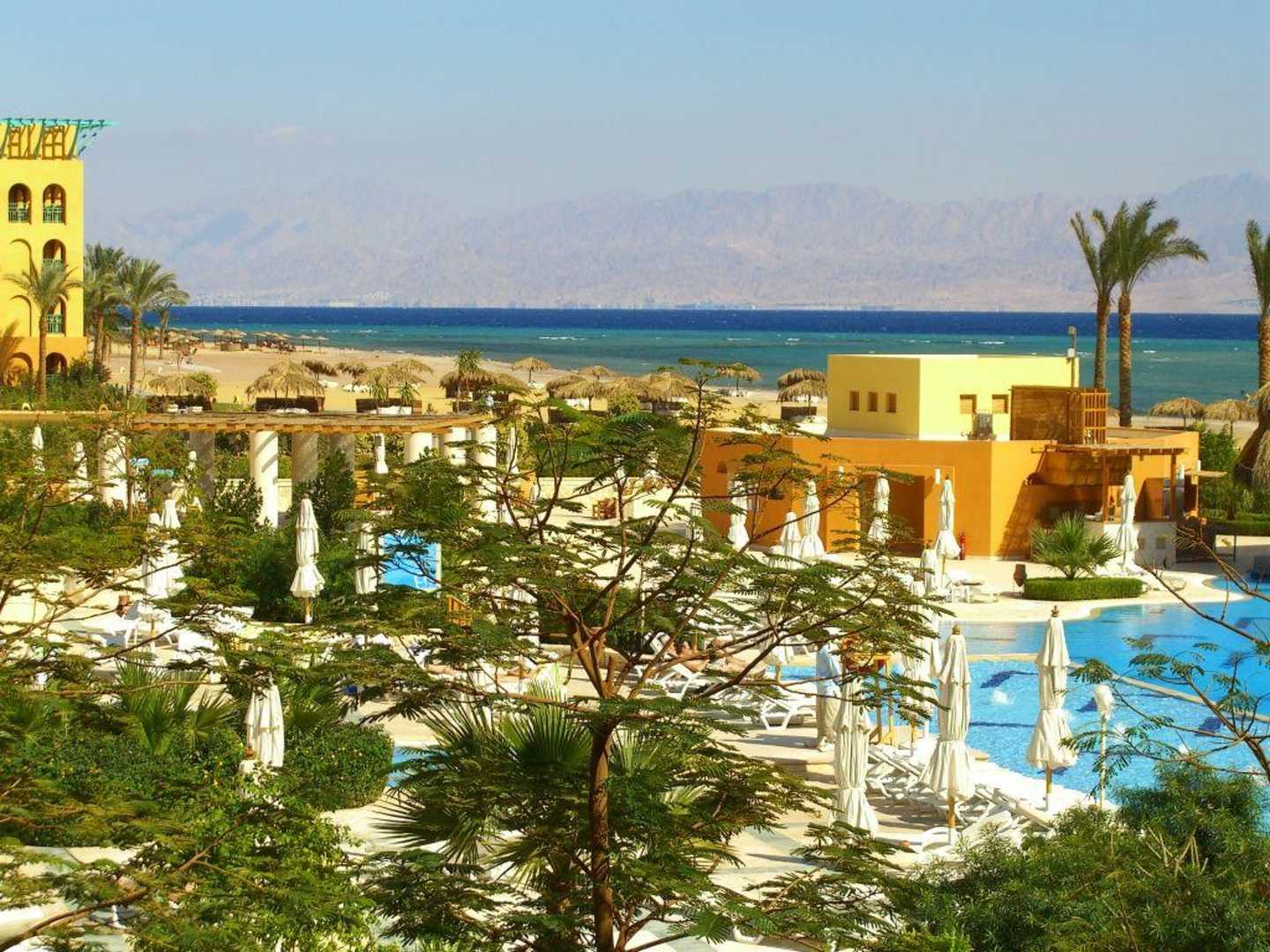 Blick vom ZimmerBlick vom Zimmer auf die schöne Gartenanlage und im Hintergrund ist Jordanien zu sehen