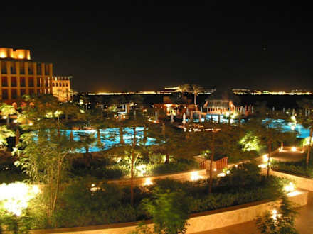 Poolblick bei NachtPool und Gartenanlage bei Nacht