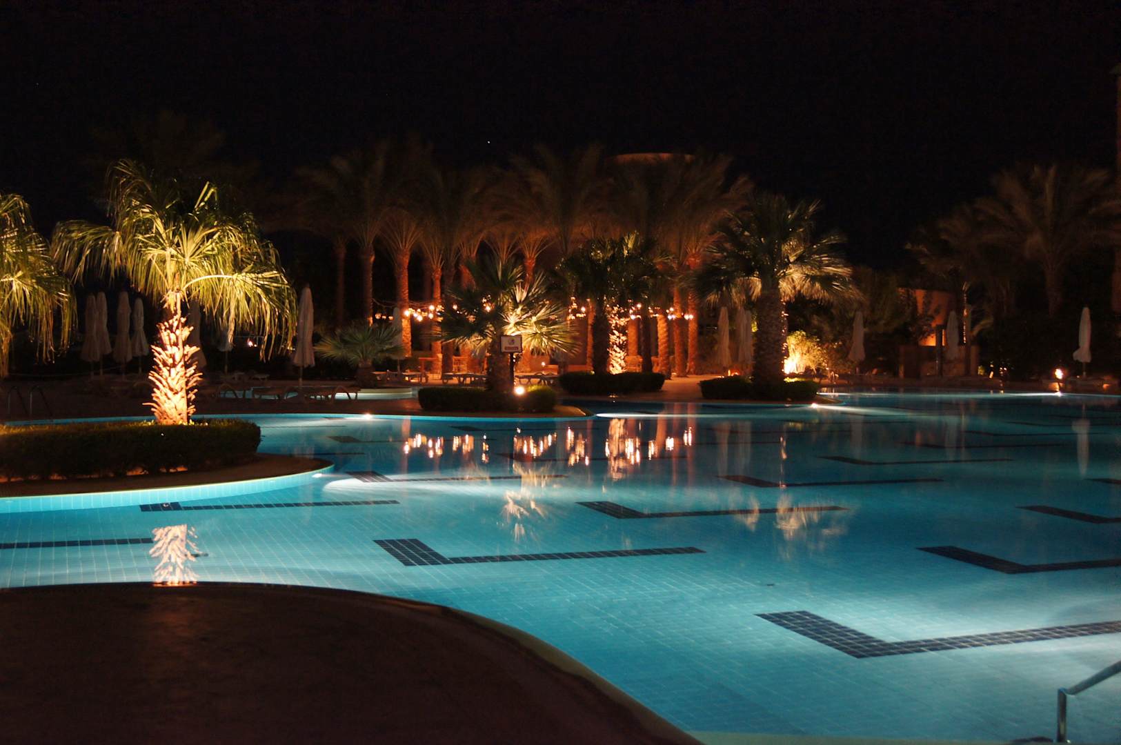 Poolanlage mit nächtlicher Beleuchtung