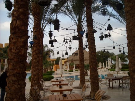 Blick vom Restaurant de Mare auf Poolanlage