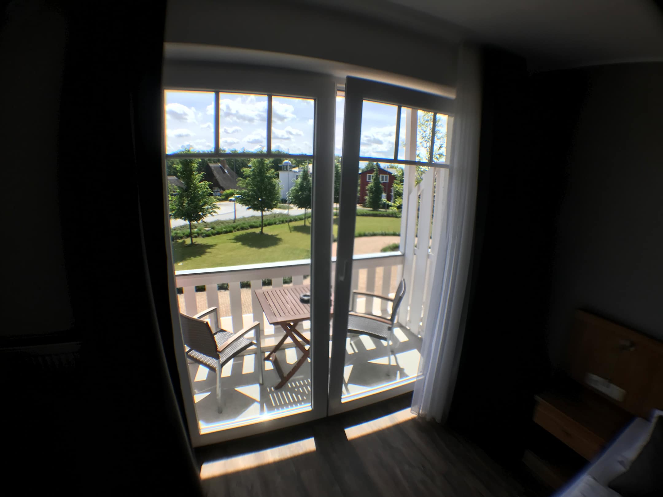 Zimmer mit blick auf den Balkon.