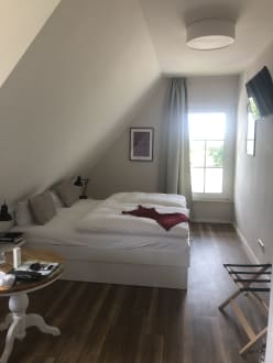 Wie man sieht, ist die Schräge im Zimmer erheblich.