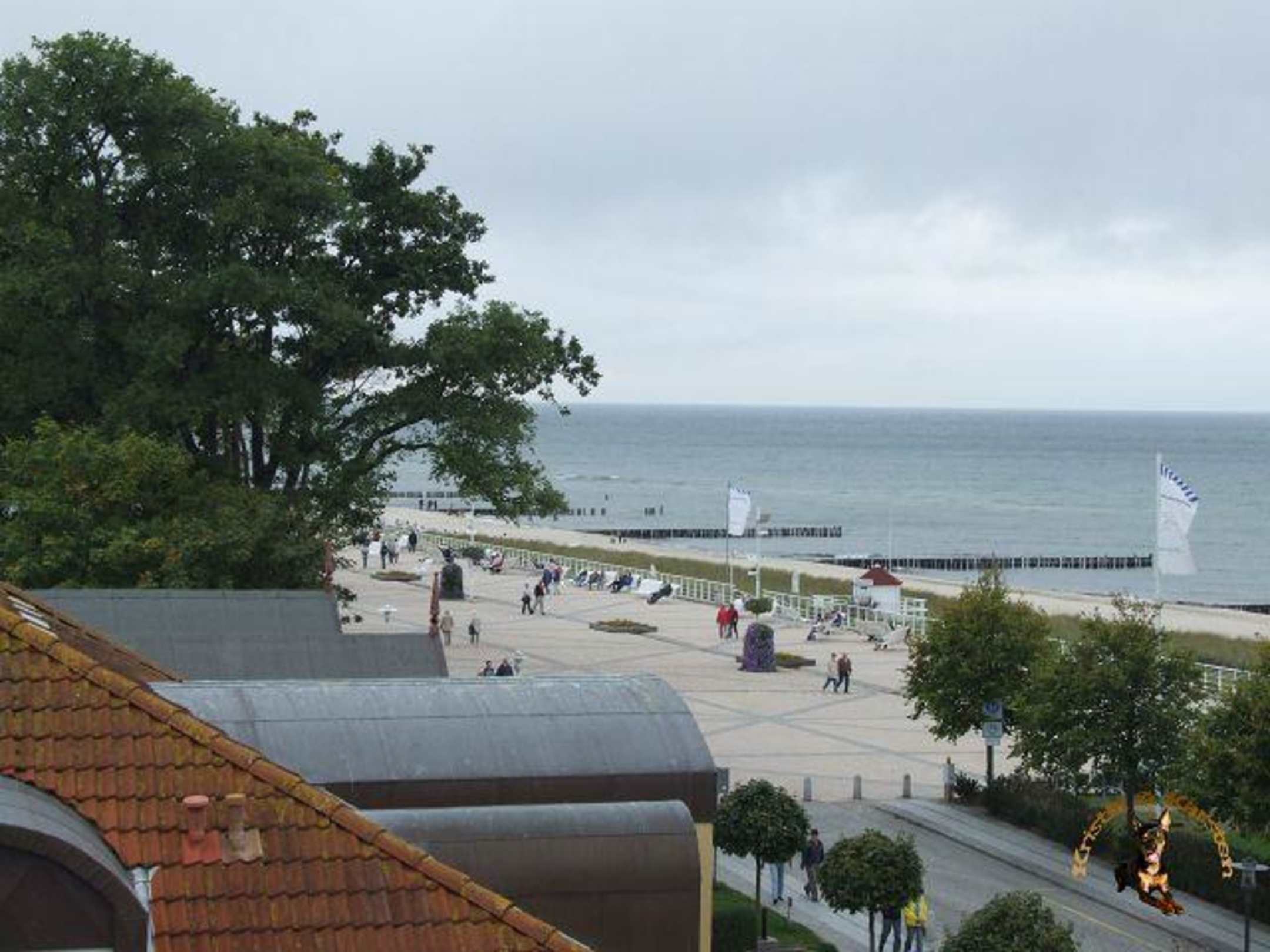 Ausblick aus Zimmer 16Blick auf die breite Strandpromenade Kühlungsborn West sowie den Strand und die Ostsee