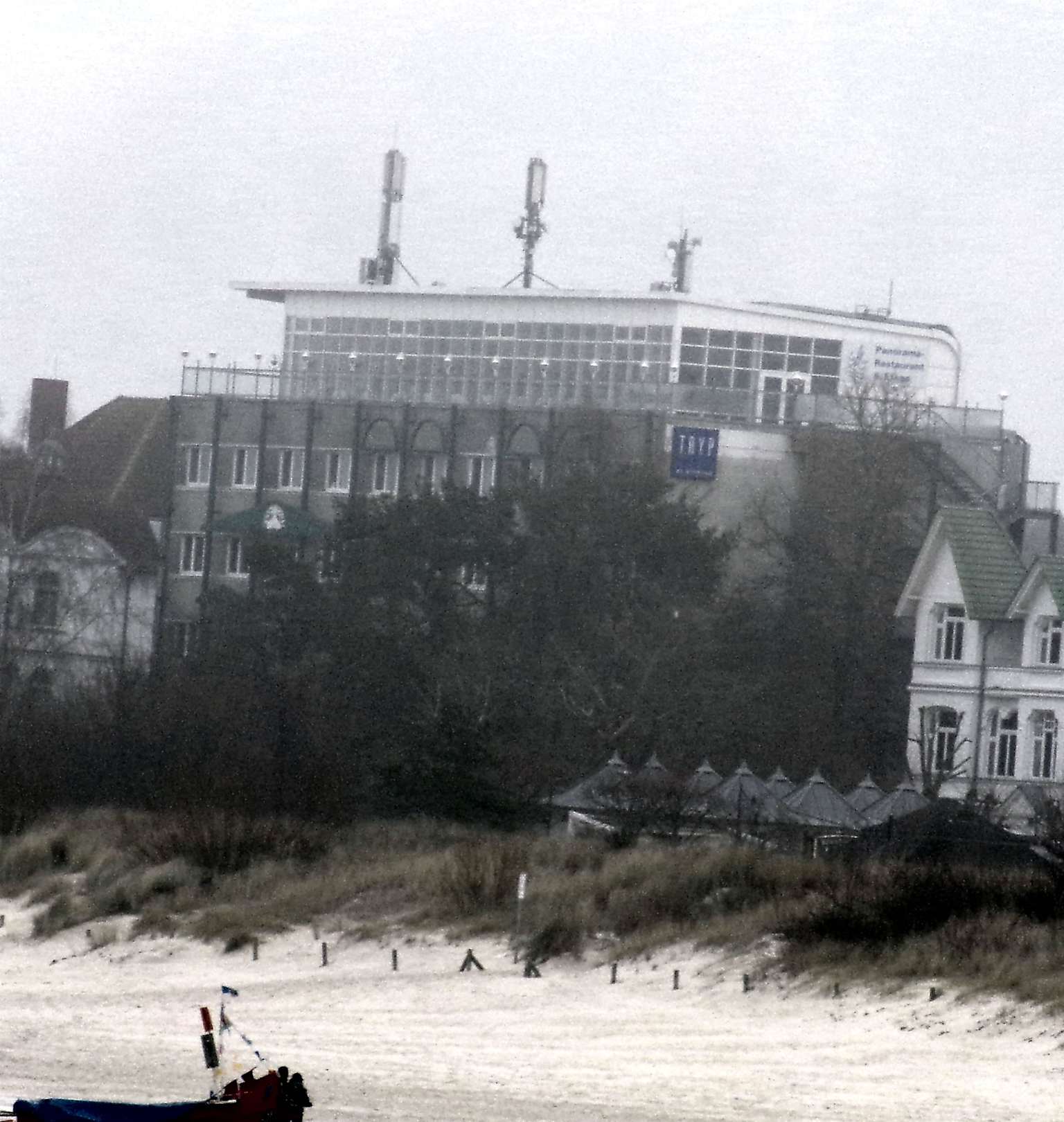 Blick vom Strand auf das Hotel.