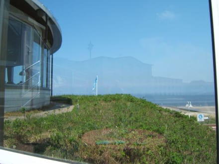 Wangerooge PudingVon der Terasse des Puding - Das Strandhotel Upstalsboom spiegelt sich in den Blick.
