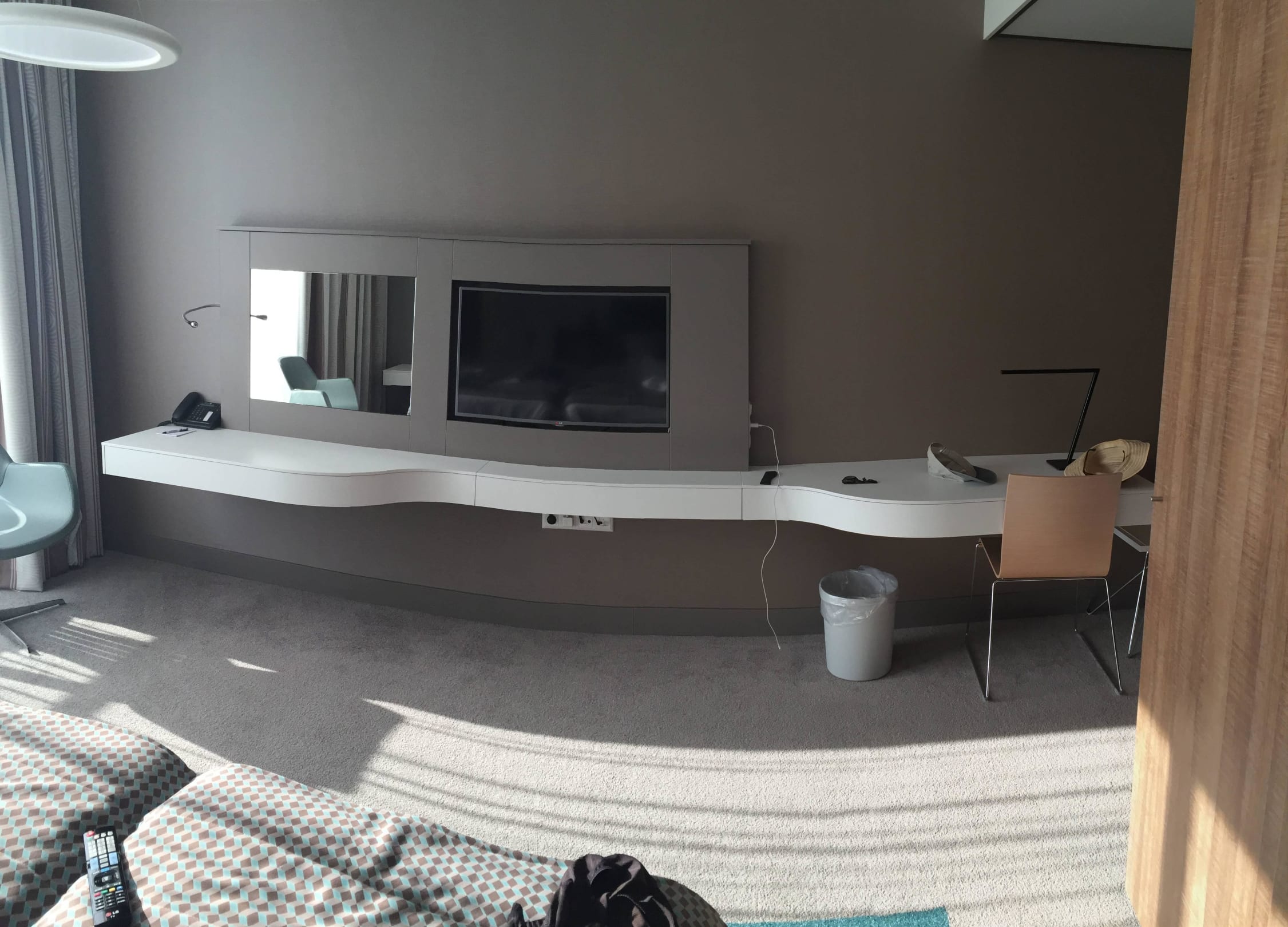 Schreibtisch und Mediawand