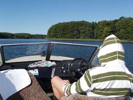 am Steg der Hotelanlage kann man sich ohne Führerschein Motorboote ausleihen. Ein angenehmer Relaxtag auf der Müritz kann beginnen...