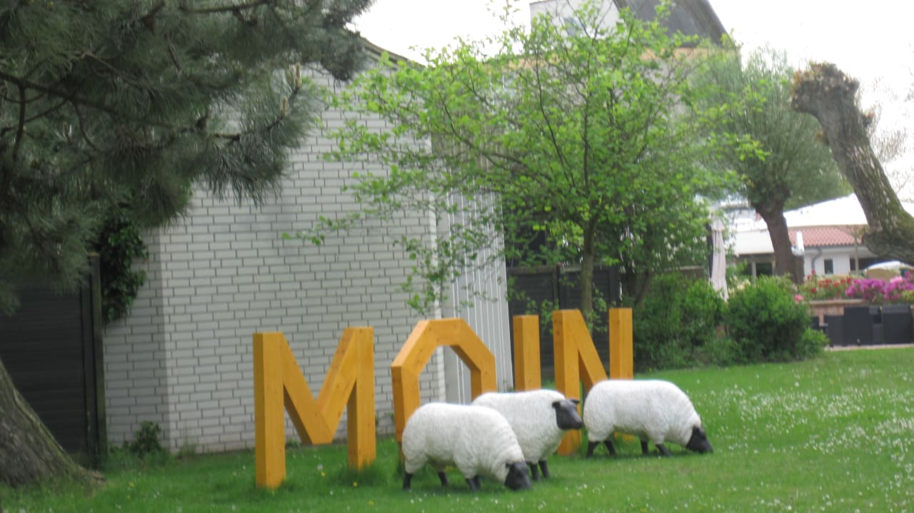 Am hinteren Ende des Strandhotels, ein Morgengruß der Schafe.