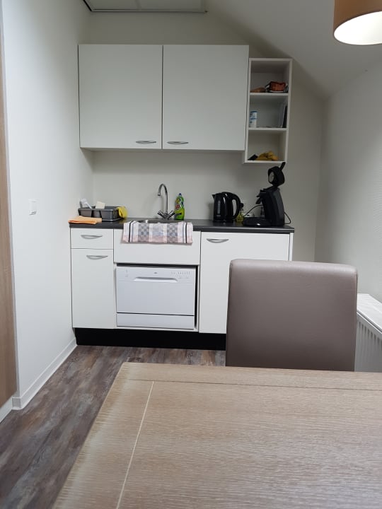 ZimmerBlick au die kleine Küche, eine Spülmaschine gibt es auch!