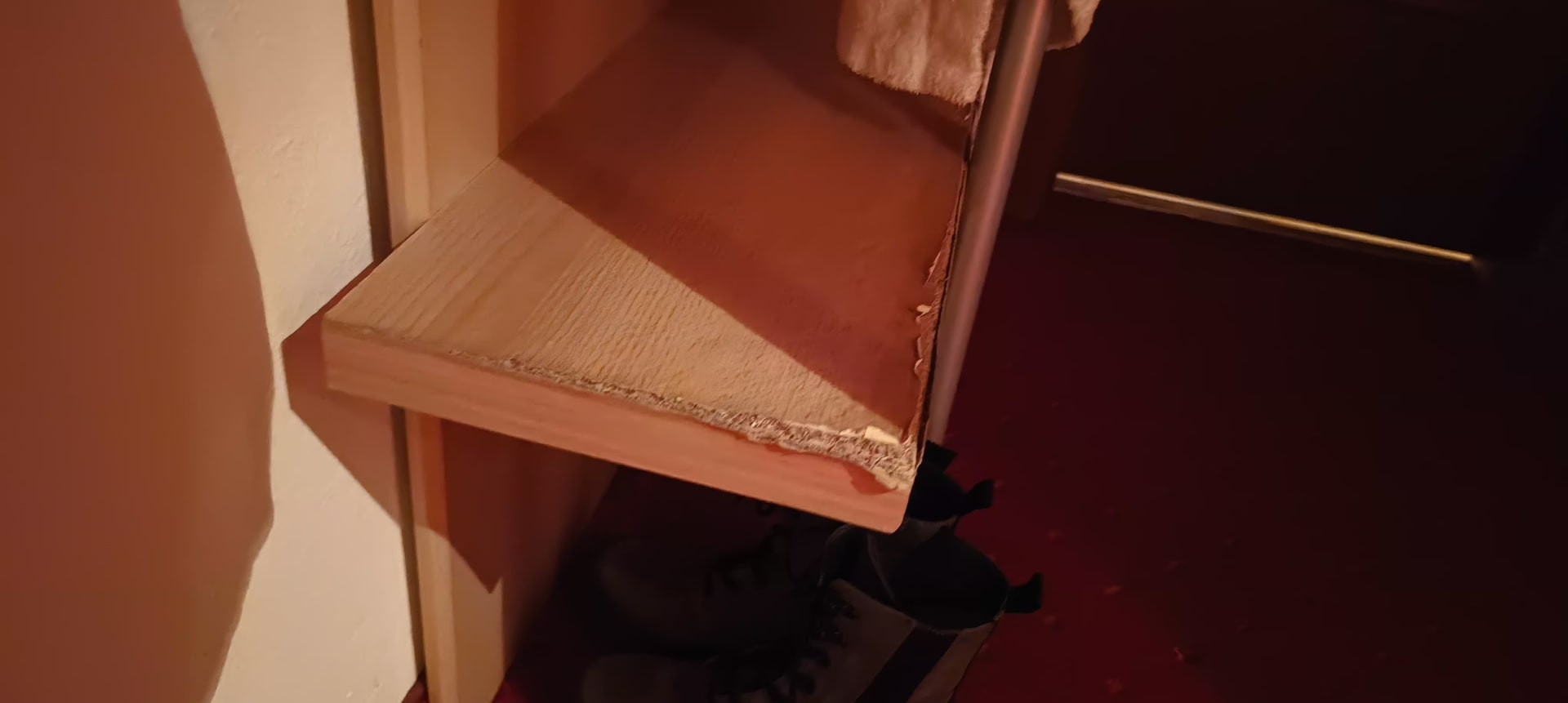 So runter gewohnt sieht nicht nur die Flurgarderobe aus: Auch der Zimmer Service verzichtet gern aufs Staubsaugen. Unter den Betten finden sich Reste von Nahrungsmitteln der vorigen Gäste...