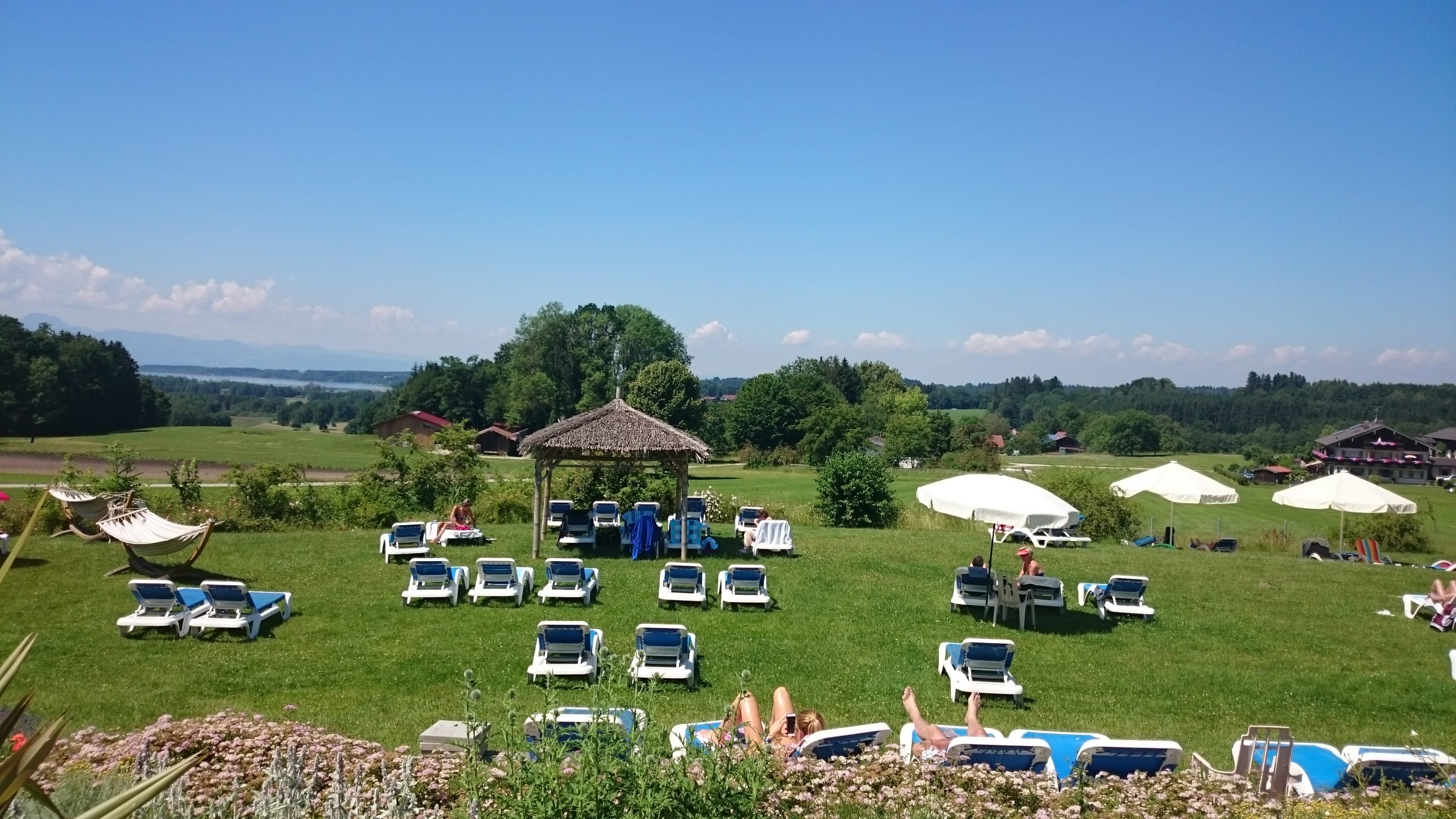 Chiemgau Therme Ausblick bis zum Chiemsee (siehe links hinten)