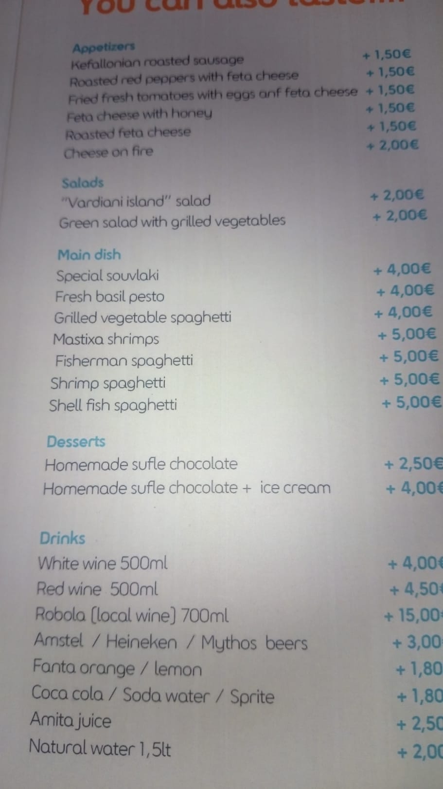 Diese Speisen gab es für einen Aufpreis zur HP