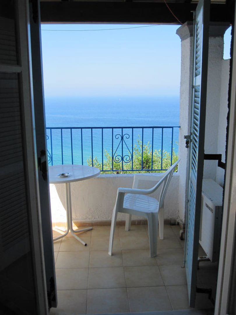 Blick vom Zimmer auf den Balkon