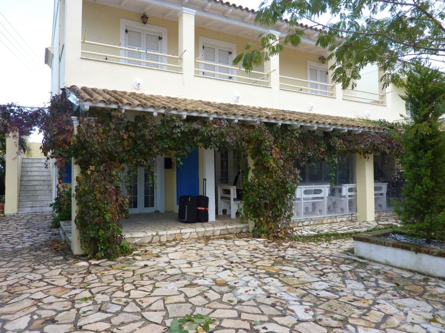RezeptionDie linke Tür zeigt die Rezeption, rechts davon geht es zum Speisesaal und dem Garten mit Grillstelle