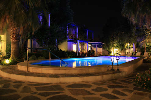 Der Pool ist am Abend stimmungsvoll beleuchte