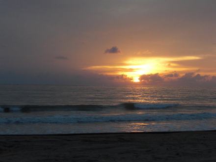 Strand vorm Hotel bei Sonnenuntergang