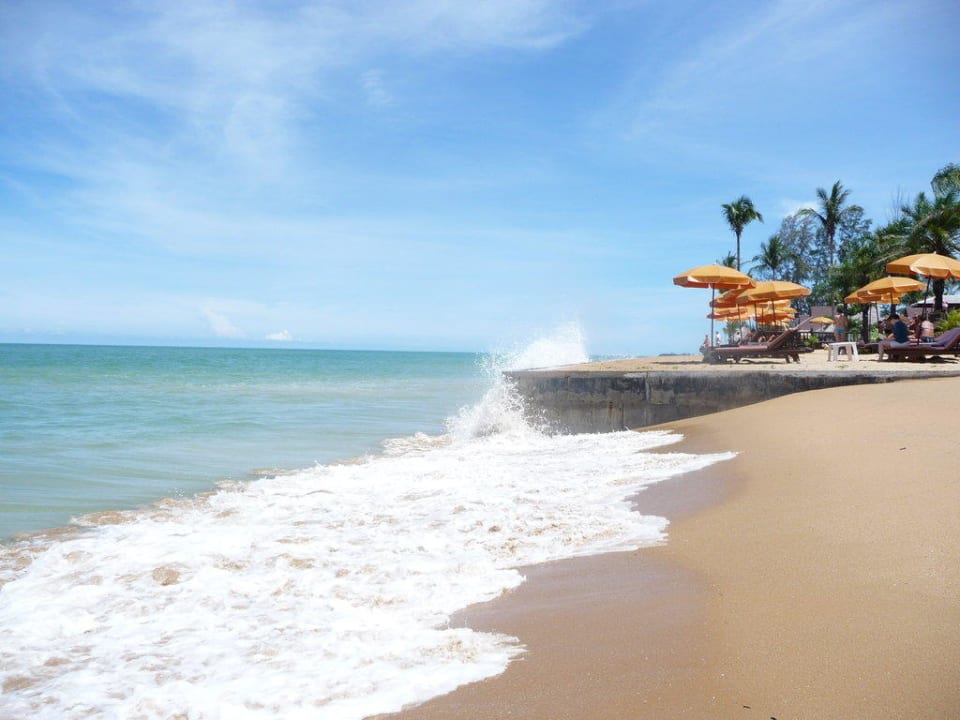 Strand bei Fluthier kommt gerade die flut, herrliches spektakel an dem betonierten strandabschnitt vom sudala hotel.