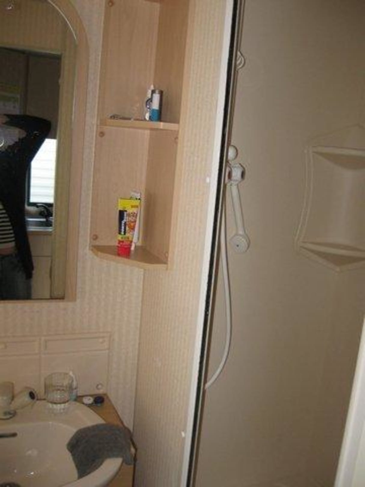 BadezimmerLeider etwas schwer zu fotografieren...hier erkennt man noch das Waschbecken und rechts die Dusche