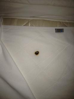 Brandloch im Matrazenbezug