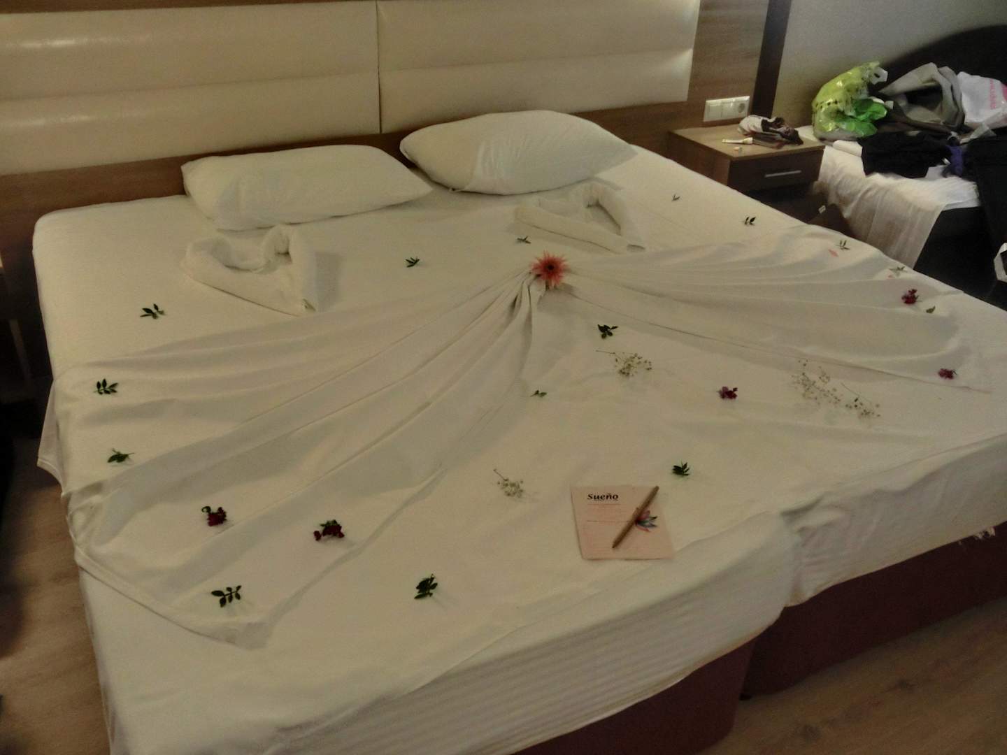 Einmal wurde das Bett dekoriert