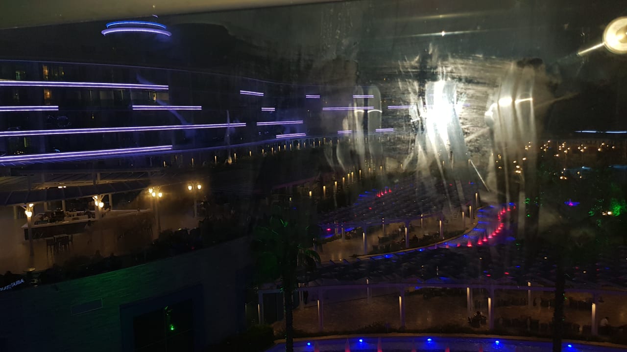 Zimmer 3233, ekelig verschmierte gläserne Balkon Balkonbalustrade über 3 Wochen