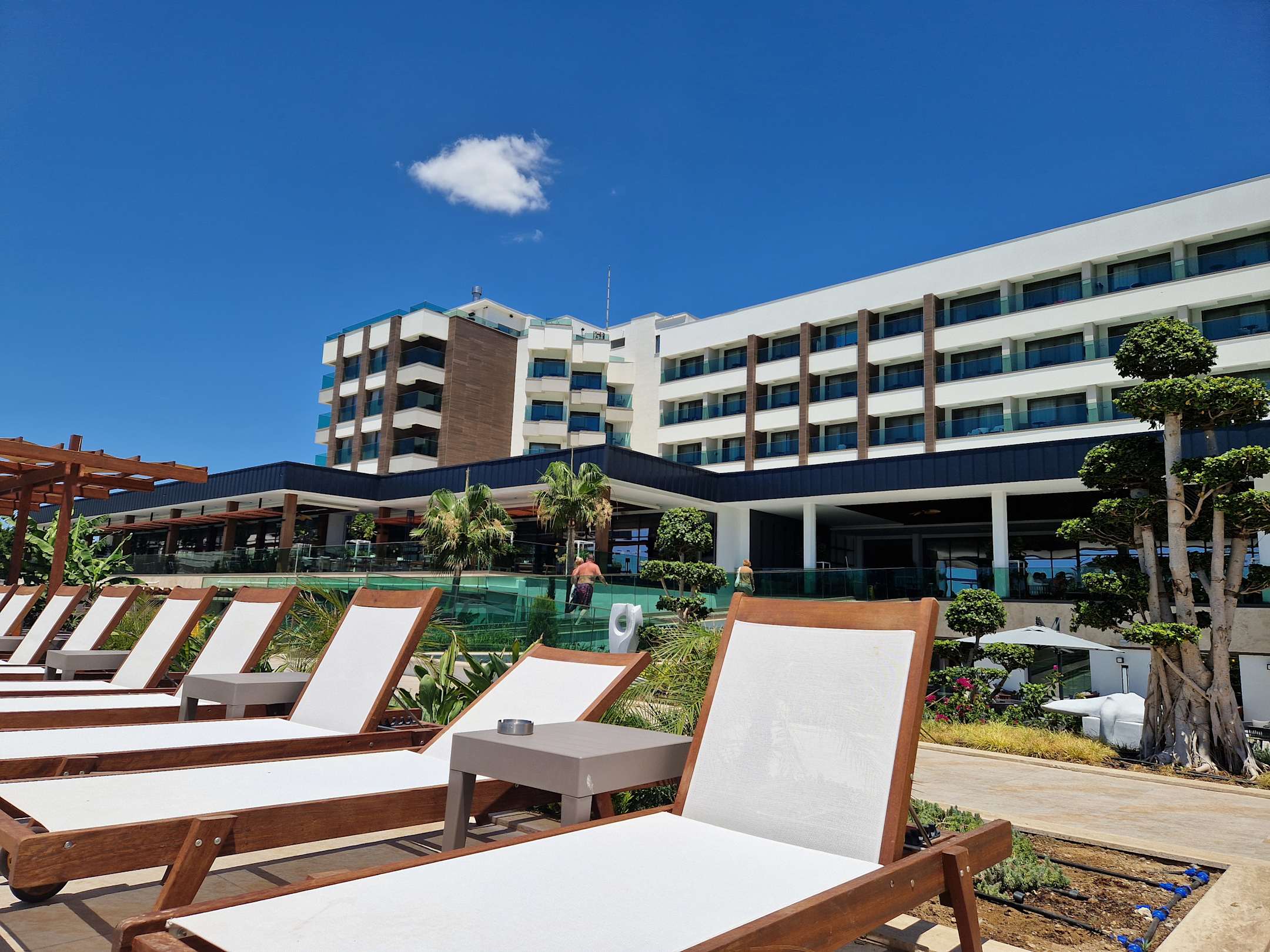 Blick vom Pool aufs Hotel