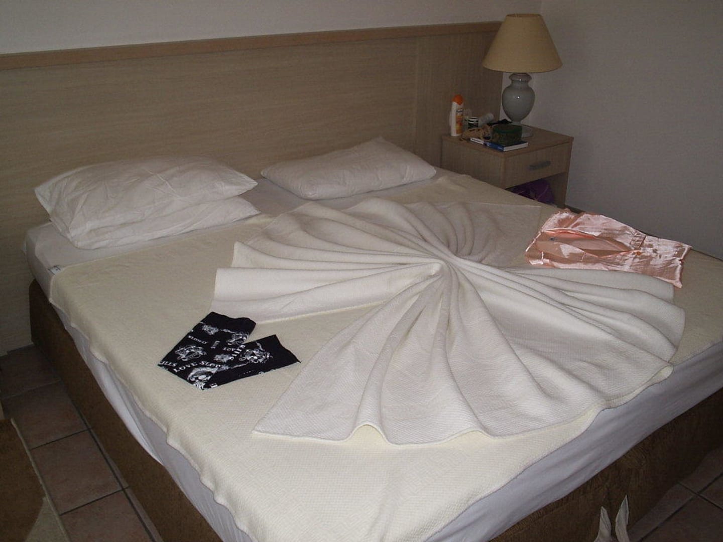 unser Bett leider ohne Blumen
