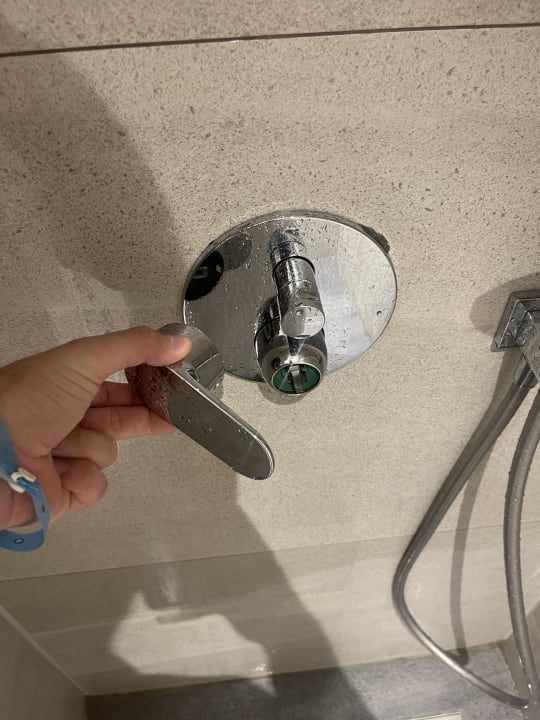 Duschkopf in der Hand anstatt auf der Armatur