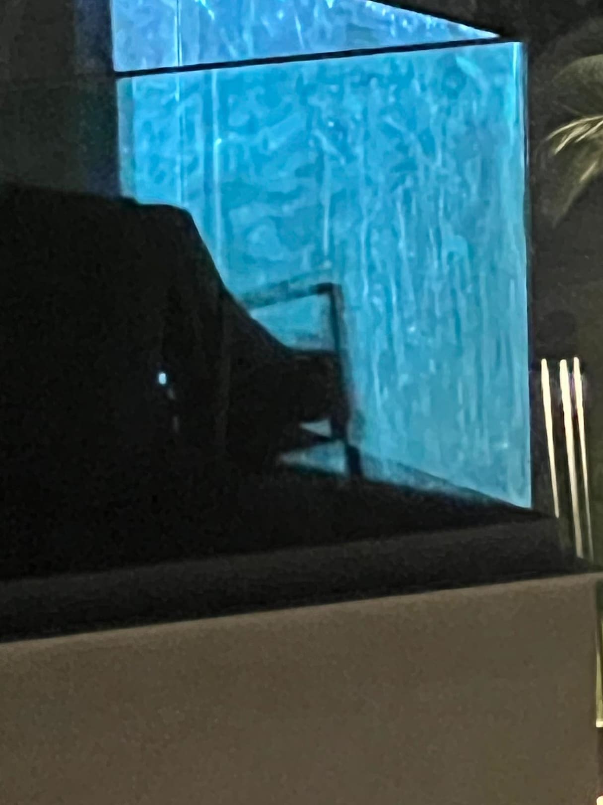 Schmutziger Balkon der Nachbarzimmer im Scheinwerferlicht.
