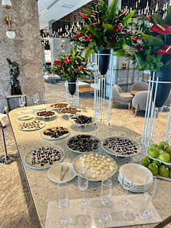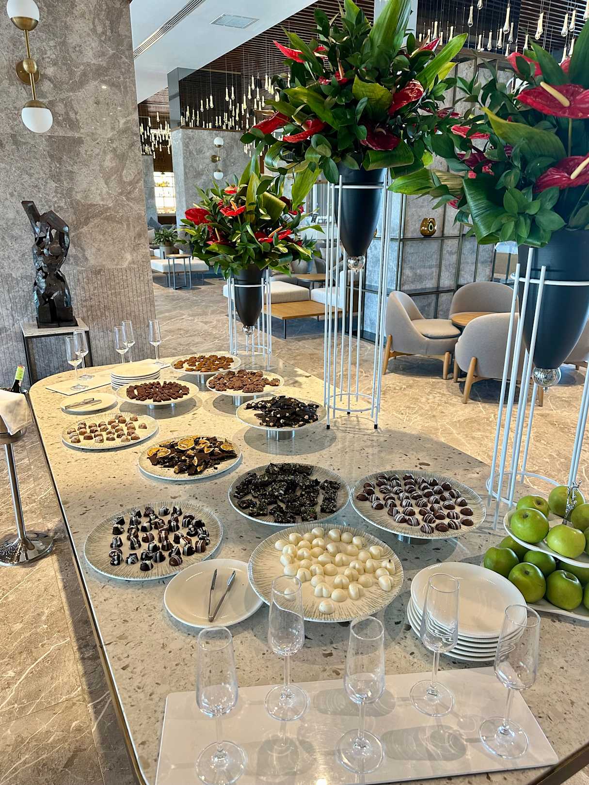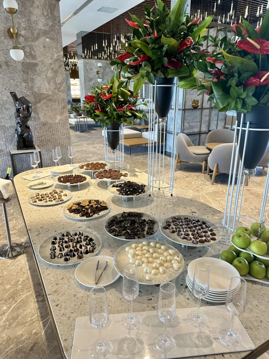 Begrüßungssekt und Pralinen.